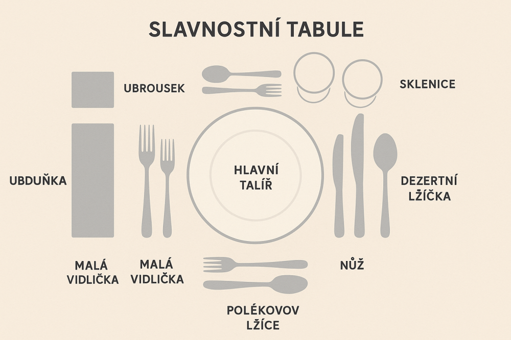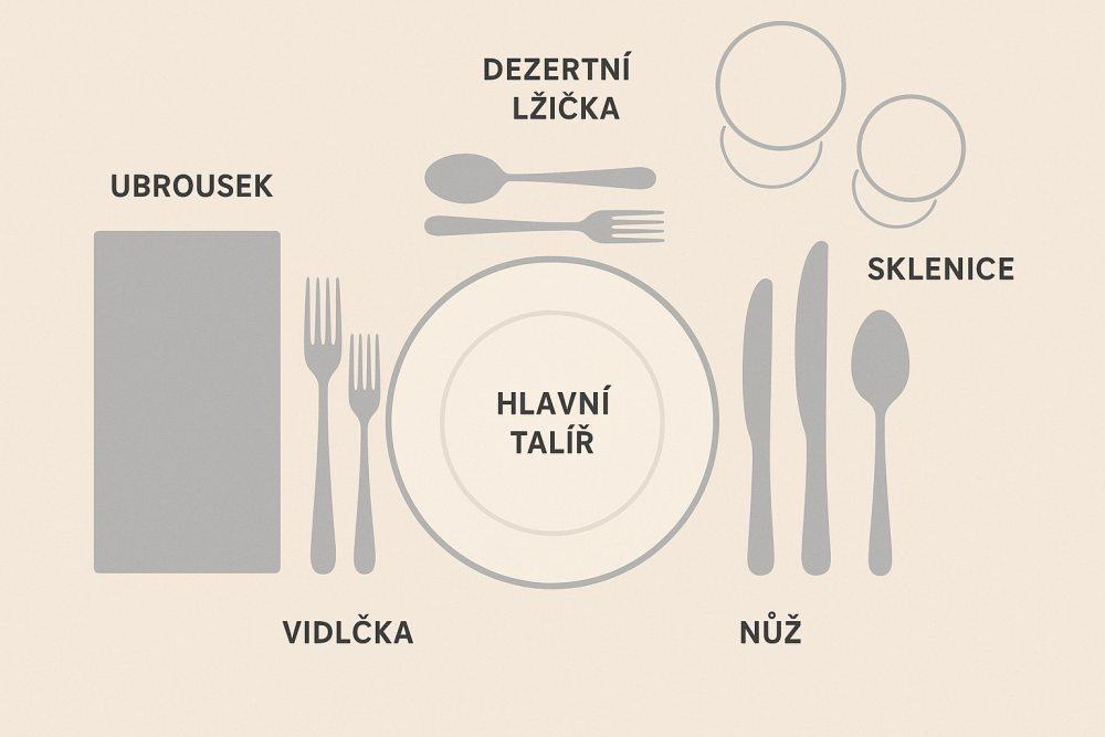- Vpravo od talíře: nože a lžíce.
